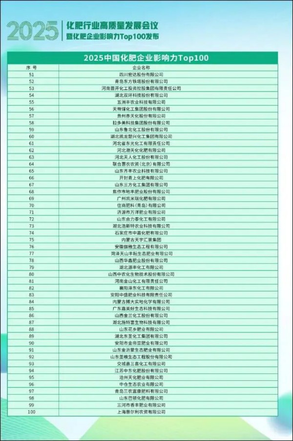 此次登榜中国化肥企业影响力 Top100,是行业对花乡肥业综合实力的权威认可,更是企业多年匠心耕耘的荣耀见证。站在新的发展起点,花乡肥业将以此为契机,持续精进技术创新、优化产品结构、升级服务体系,以更强的责任担当赋能现代农业发展,为保障国家粮食安全、推动乡村振兴战略落地贡献更多力量。