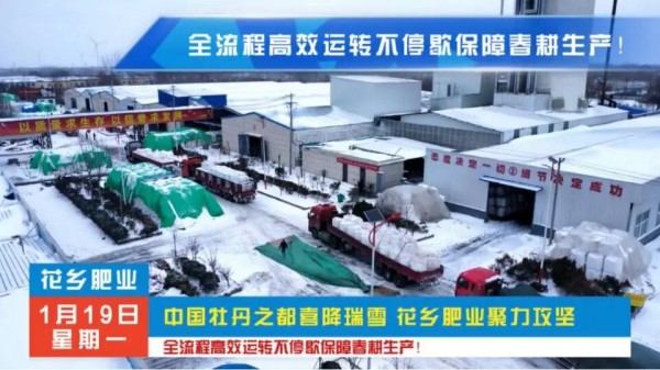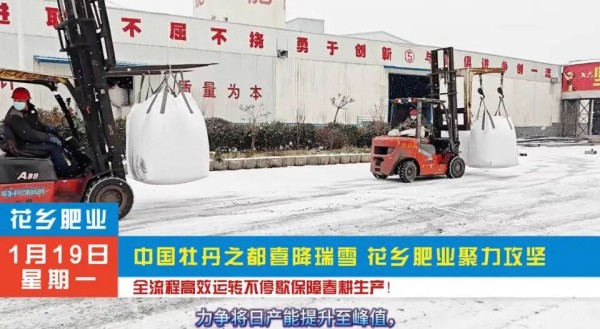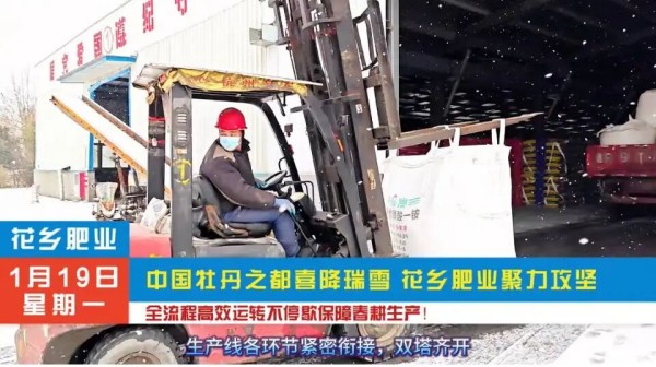 中国牡丹之都喜降瑞雪,花乡肥业聚力攻坚 ,各条生产线开足马力全力冲刺保障春耕生产!